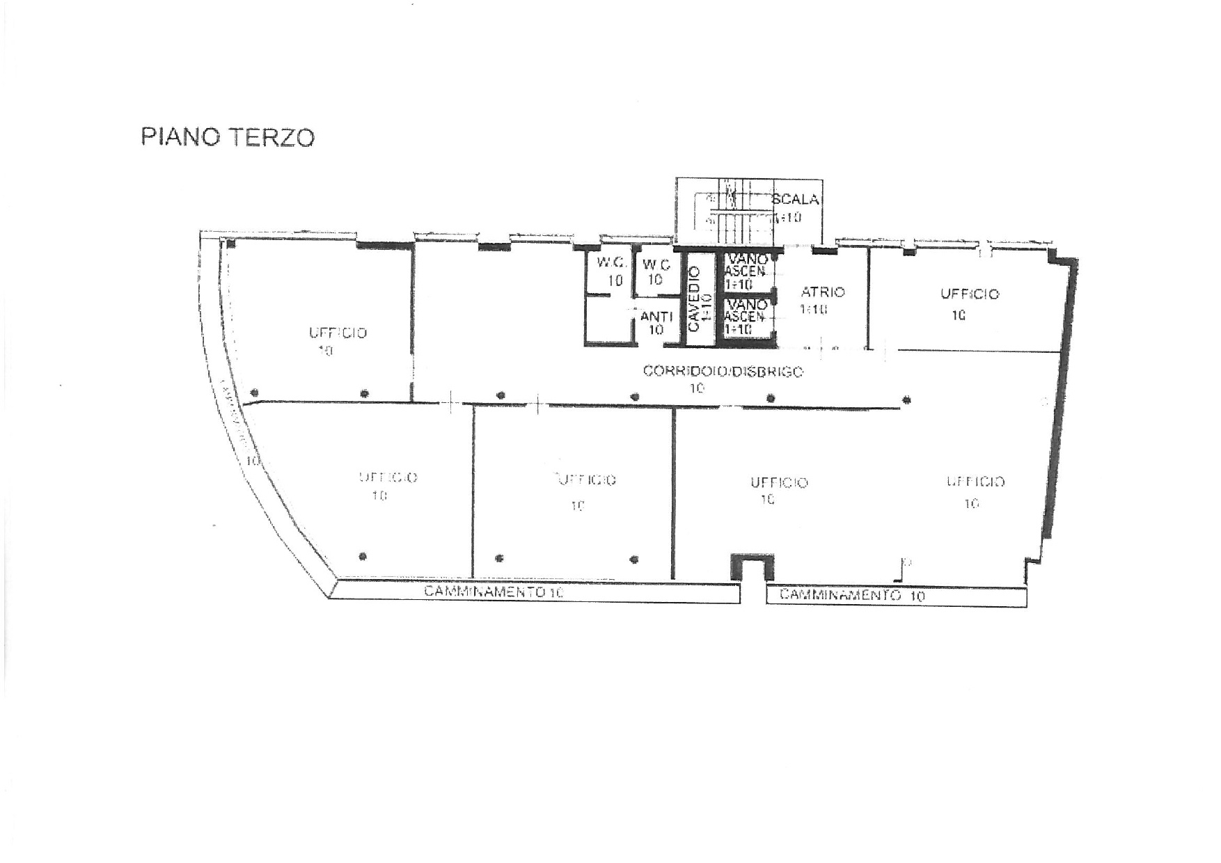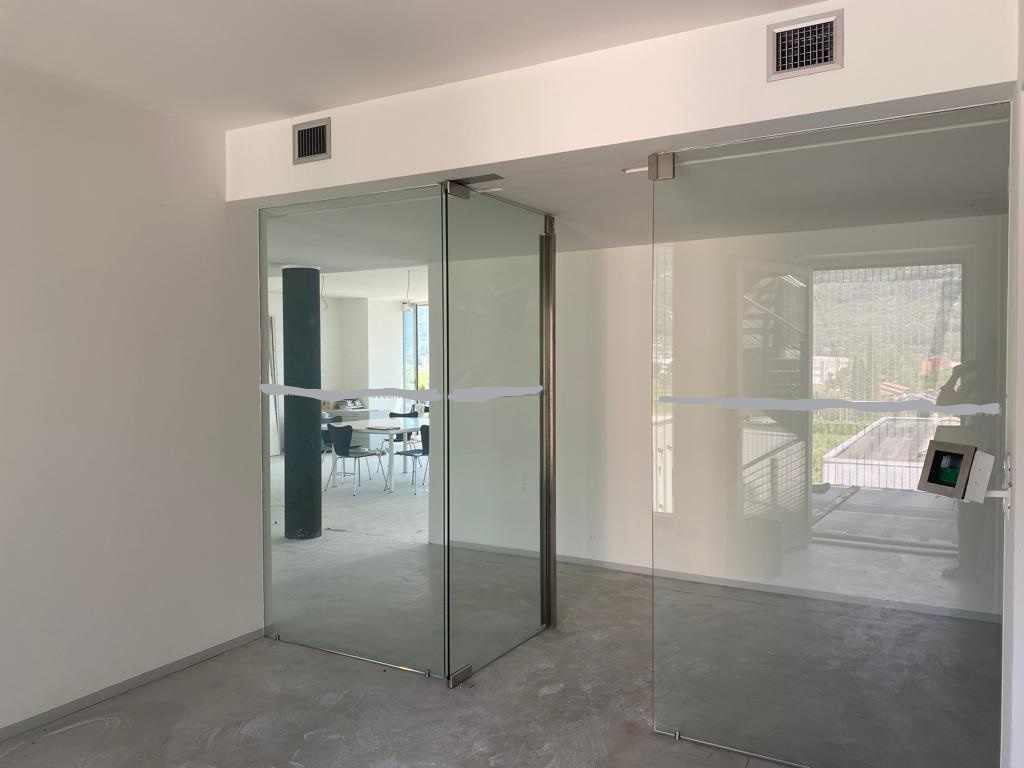 - l'interno del locale è suddiviso in due vani: un grande ufficio diviso da una parete in vetro e open space con possibilità di ulteriore suddivisione;